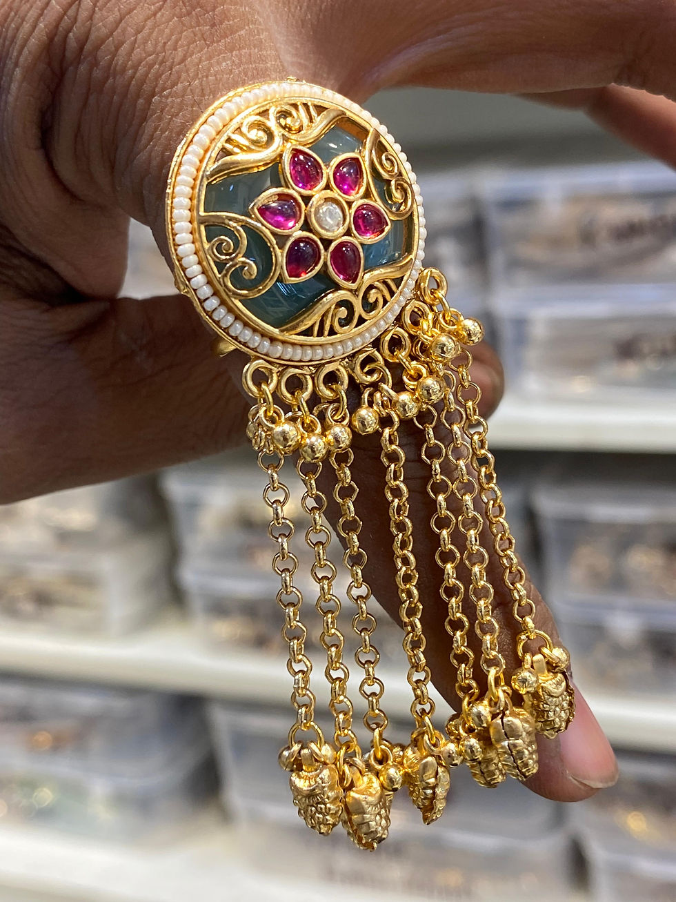 Hira Collections Meenakari Ghungroo Kashmiri Finger Ring 💍 Adjustable